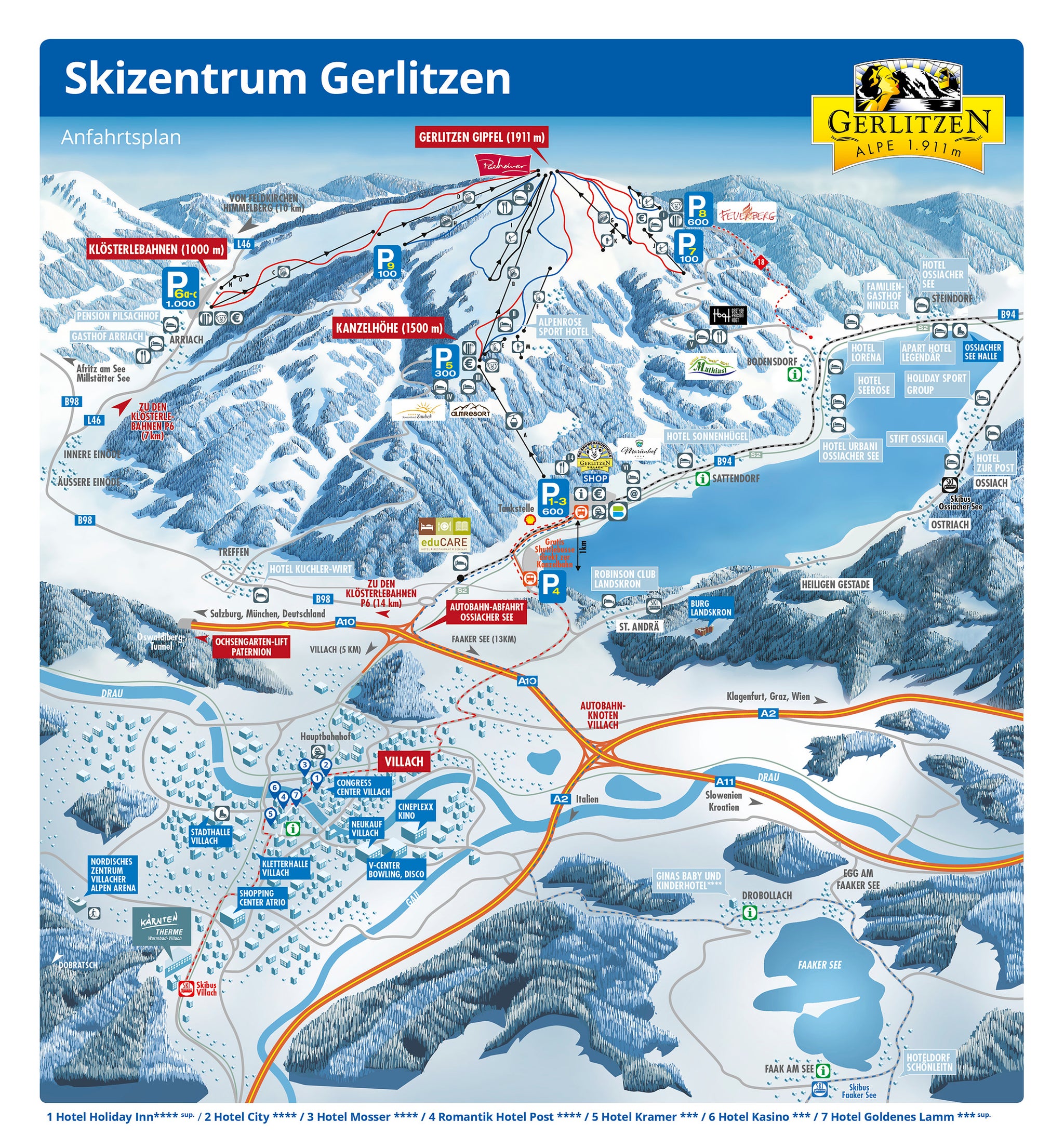 Klik på billedet nedenfor for at se pistkortet for Gerlitzen i høj kvalitet.