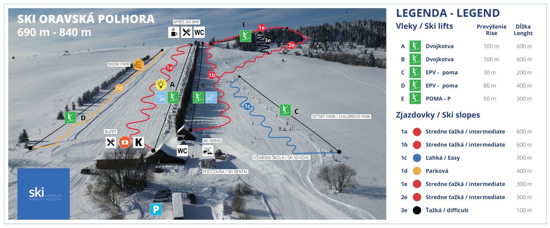 Klik på billedet nedenfor for at se pistkortet for Oravská Polhora i høj kvalitet.