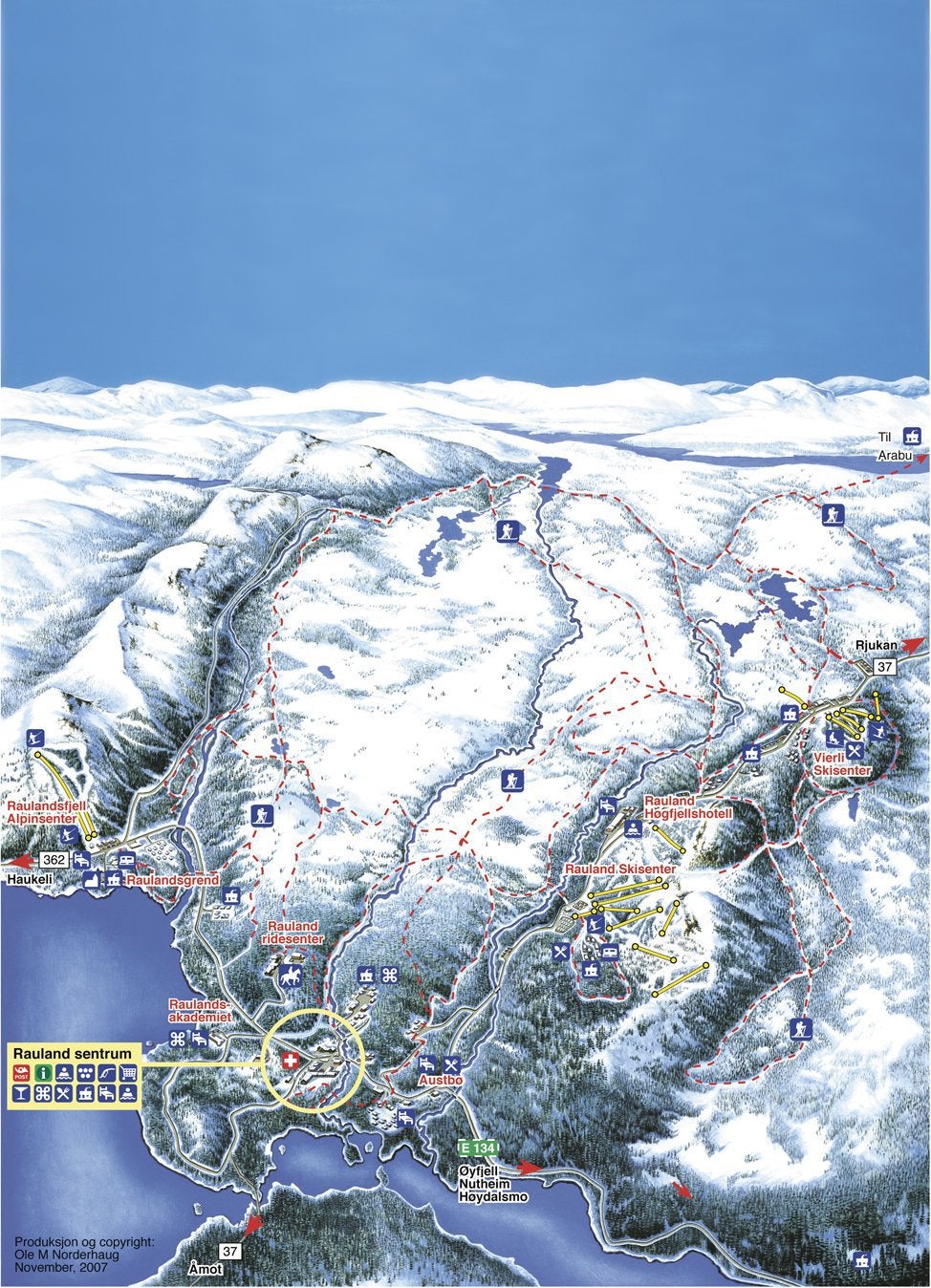 Klik på billedet nedenfor for at se pistkortet for Rauland - Vierli - Raulandsfjell i høj kvalitet.