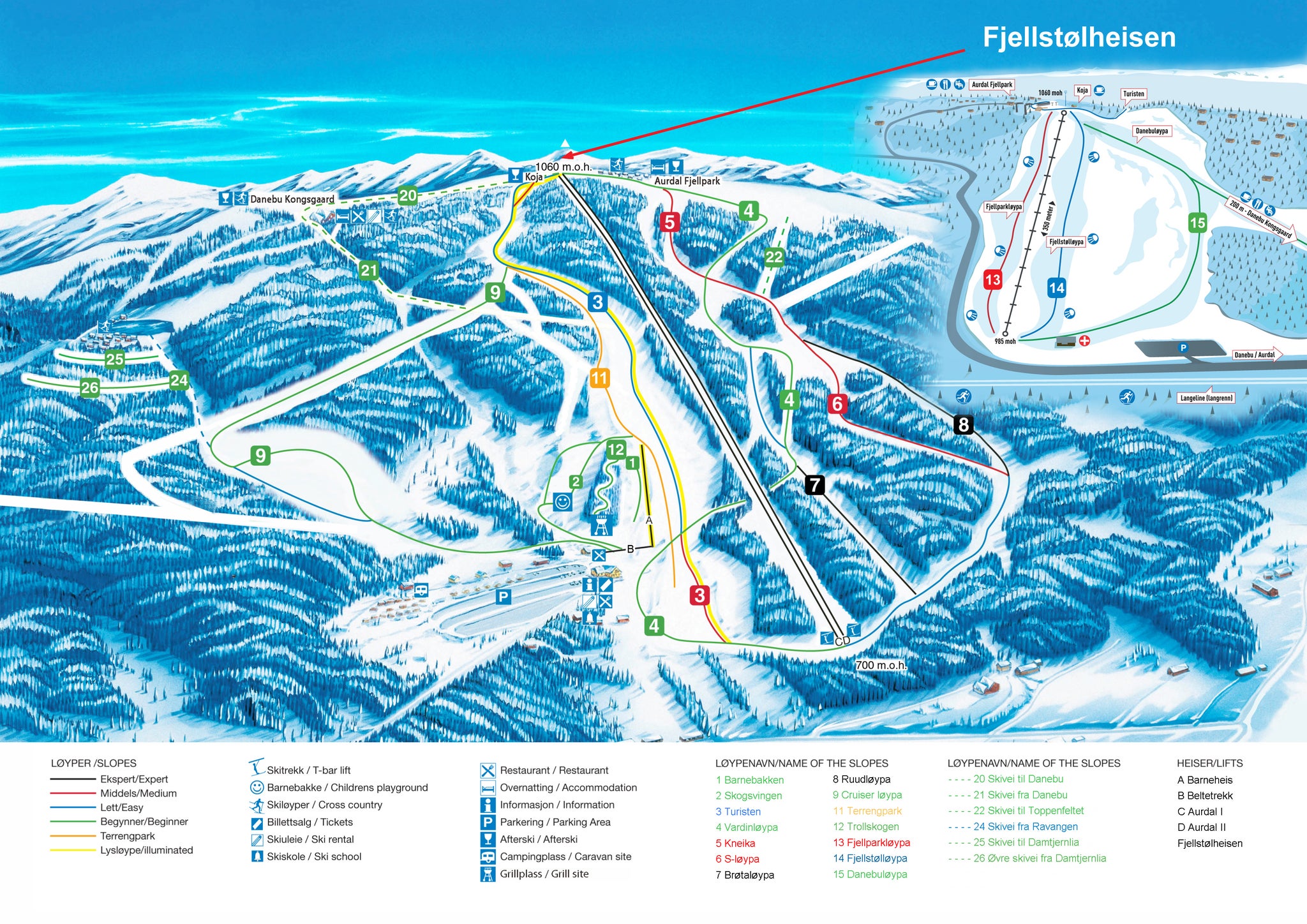 Se pister og lifte i Valdres med vores interaktive pistkort over skisportsstedet. Planlæg din dag, før du tager afsted, eller find vej på bjerget med det nyeste pistkort for Valdres.