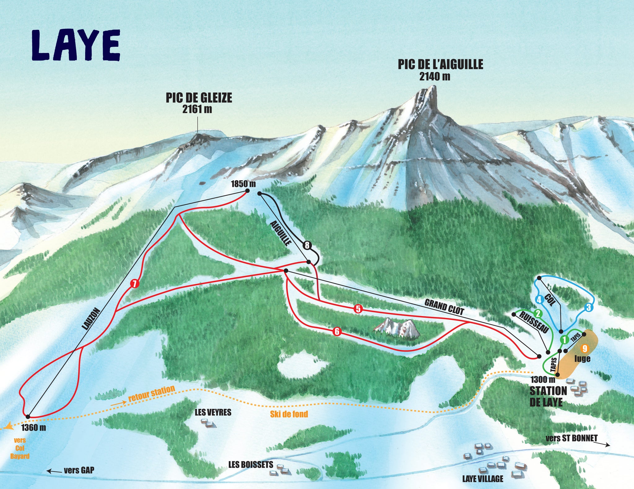Klik på billedet nedenfor for at se pistkortet for Laye en Champsaur i høj kvalitet.