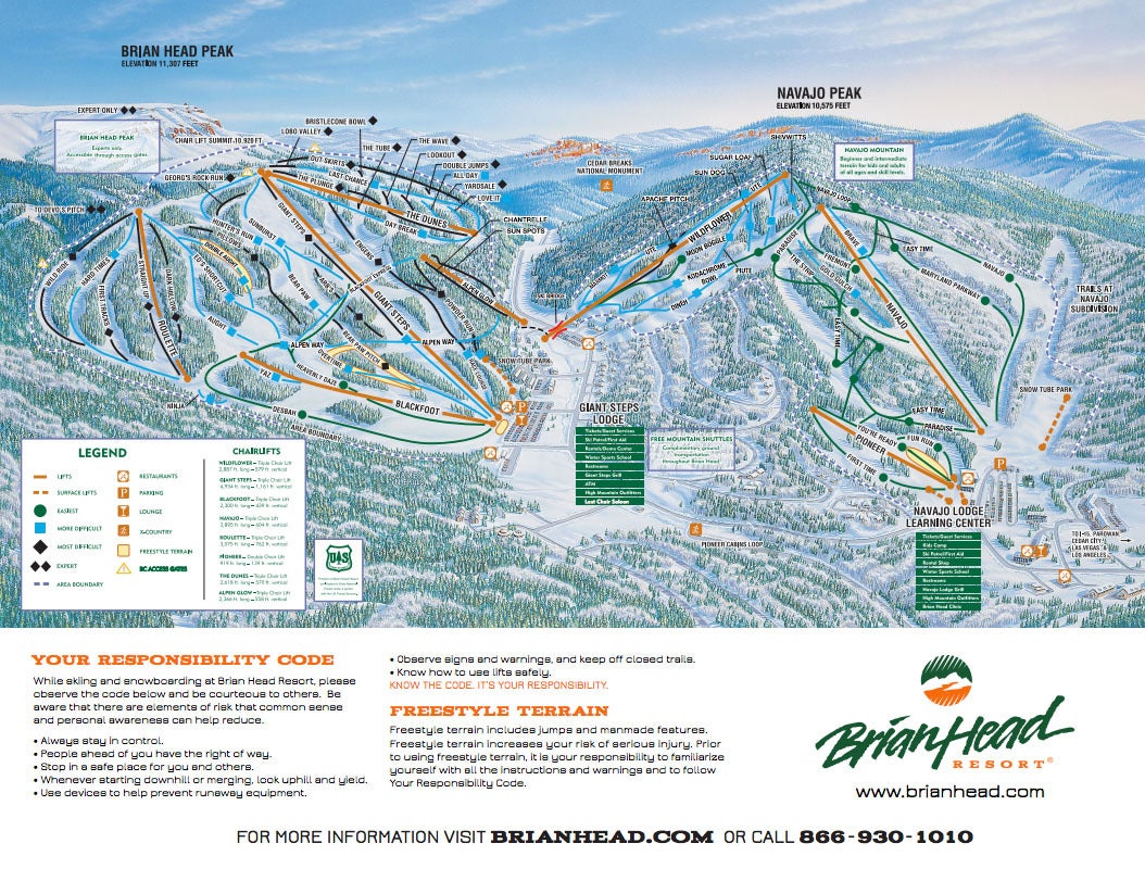 Brian Head Resorts terræn er fordelt mellem to sammenhængende bjergområder – Navajo og Giant Steps – med 263 hektar skiområde og en faldhøjde på 472 meter. Den høje beliggenhed sikrer fremragende snekvalitet hele sæsonen, og sneproduktion dækker nøgleområder for stabile forhold. Med 61 pister og 8 lifte henvender bjerget sig til mange niveauer og stilarter.