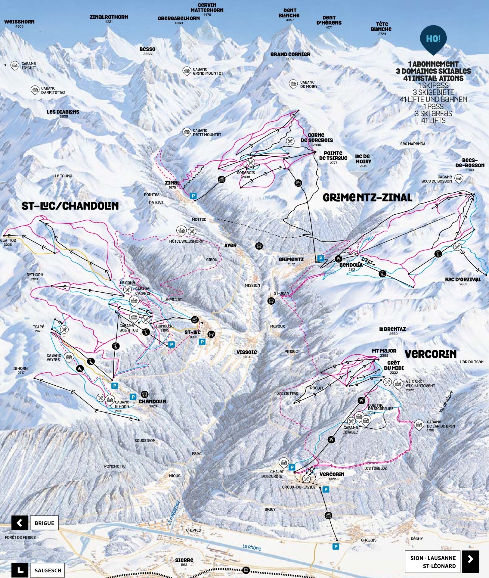 Se pister og lifte i Grimentz-Zinal med vores interaktive pistkort over skisportsstedet. Planlæg din dag, før du tager afsted, eller find vej på bjerget med det nyeste pistkort for Grimentz-Zinal.