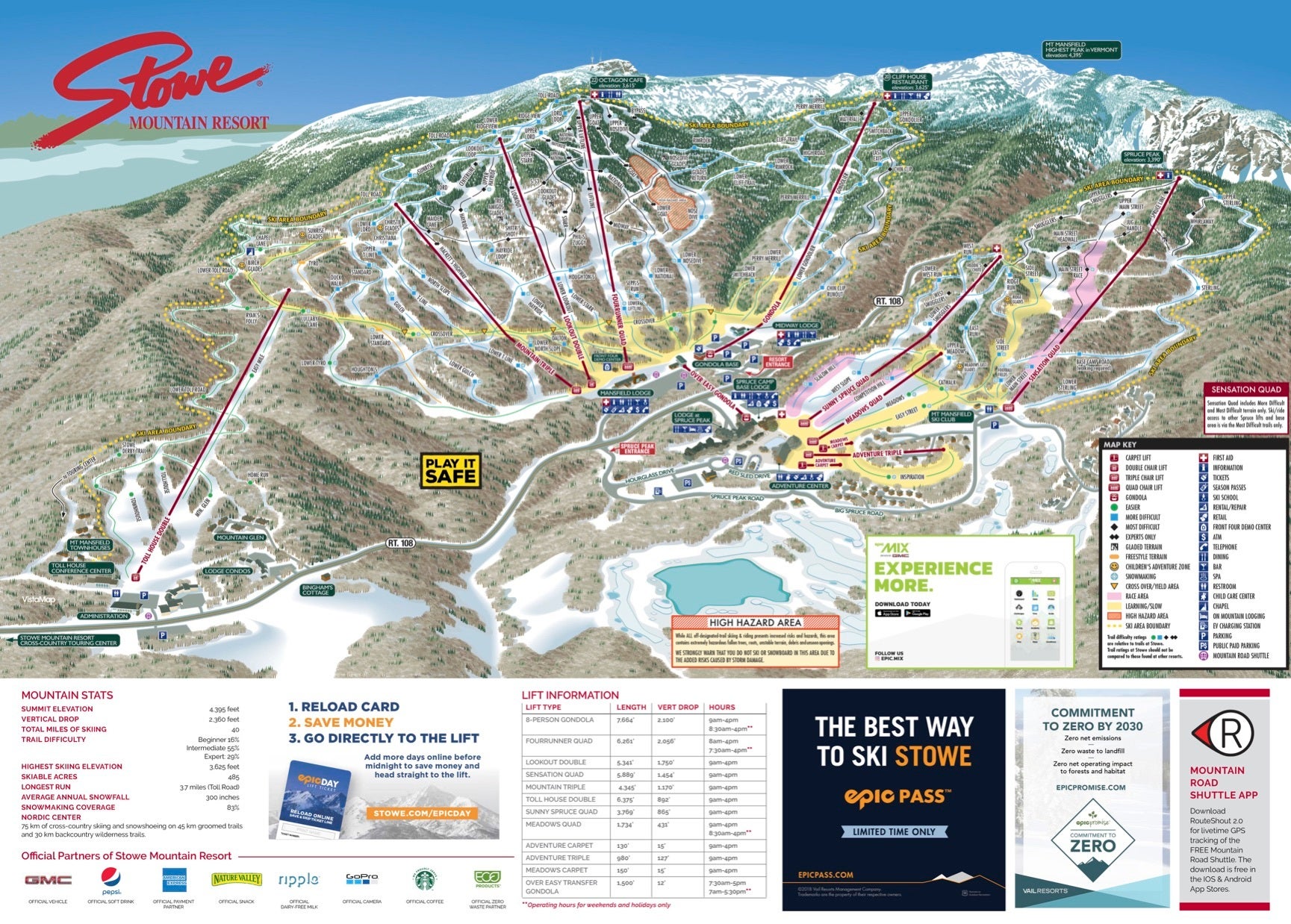 Klik på billedet nedenfor for at se pistkortet for Stowe Mountain Resort i høj kvalitet.